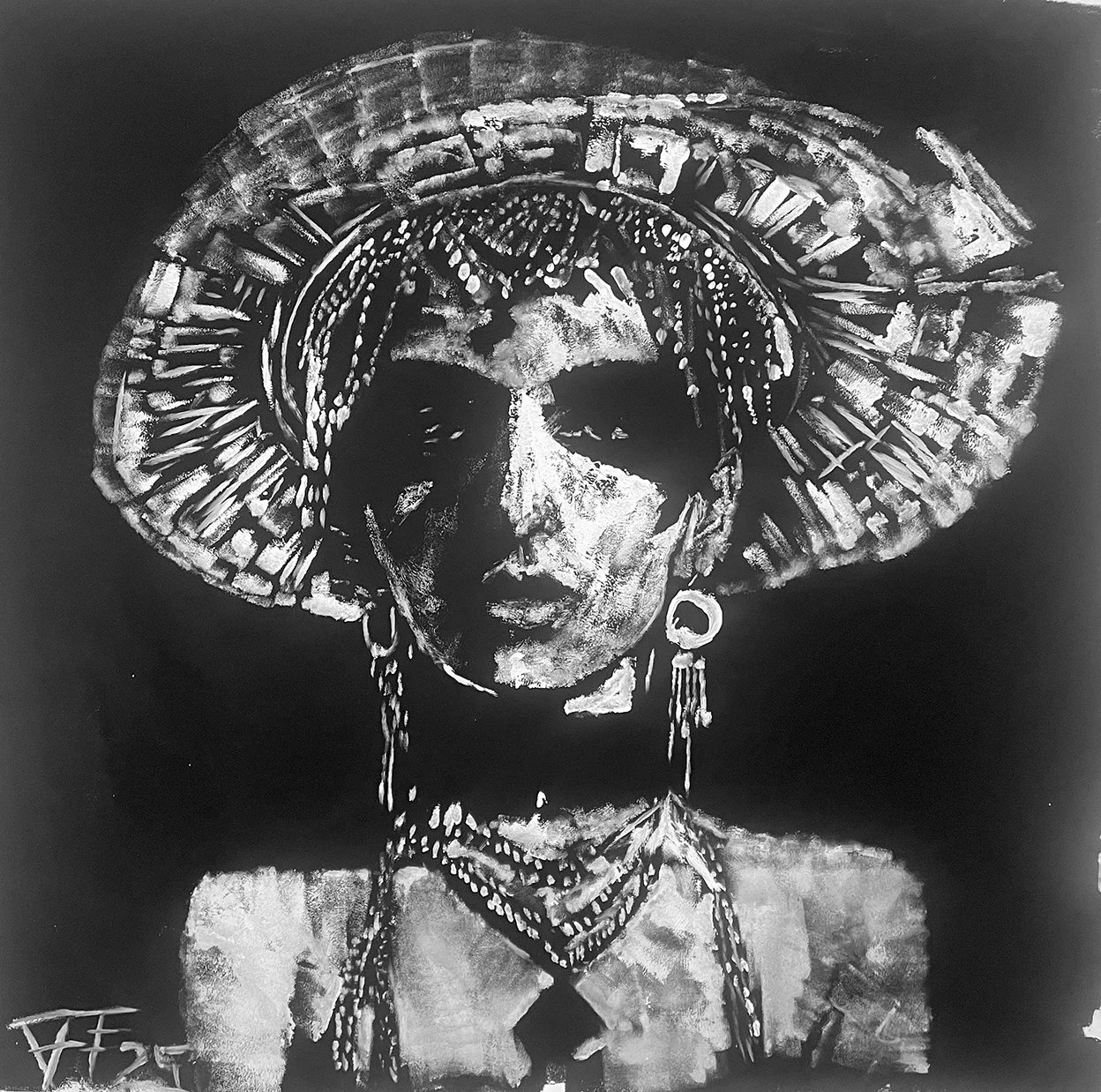 Medium: Ink and black acrylics on white gesso primed canvas